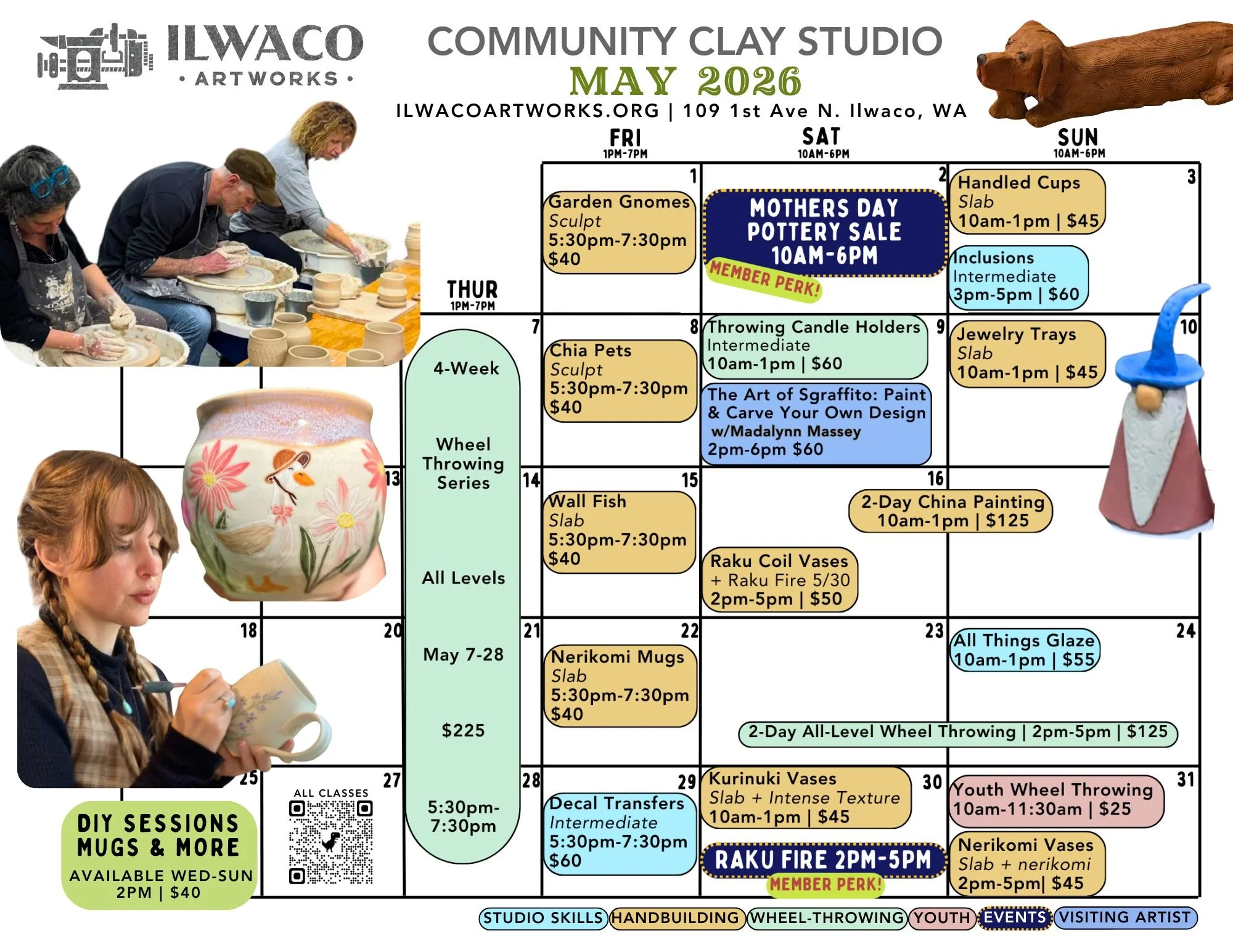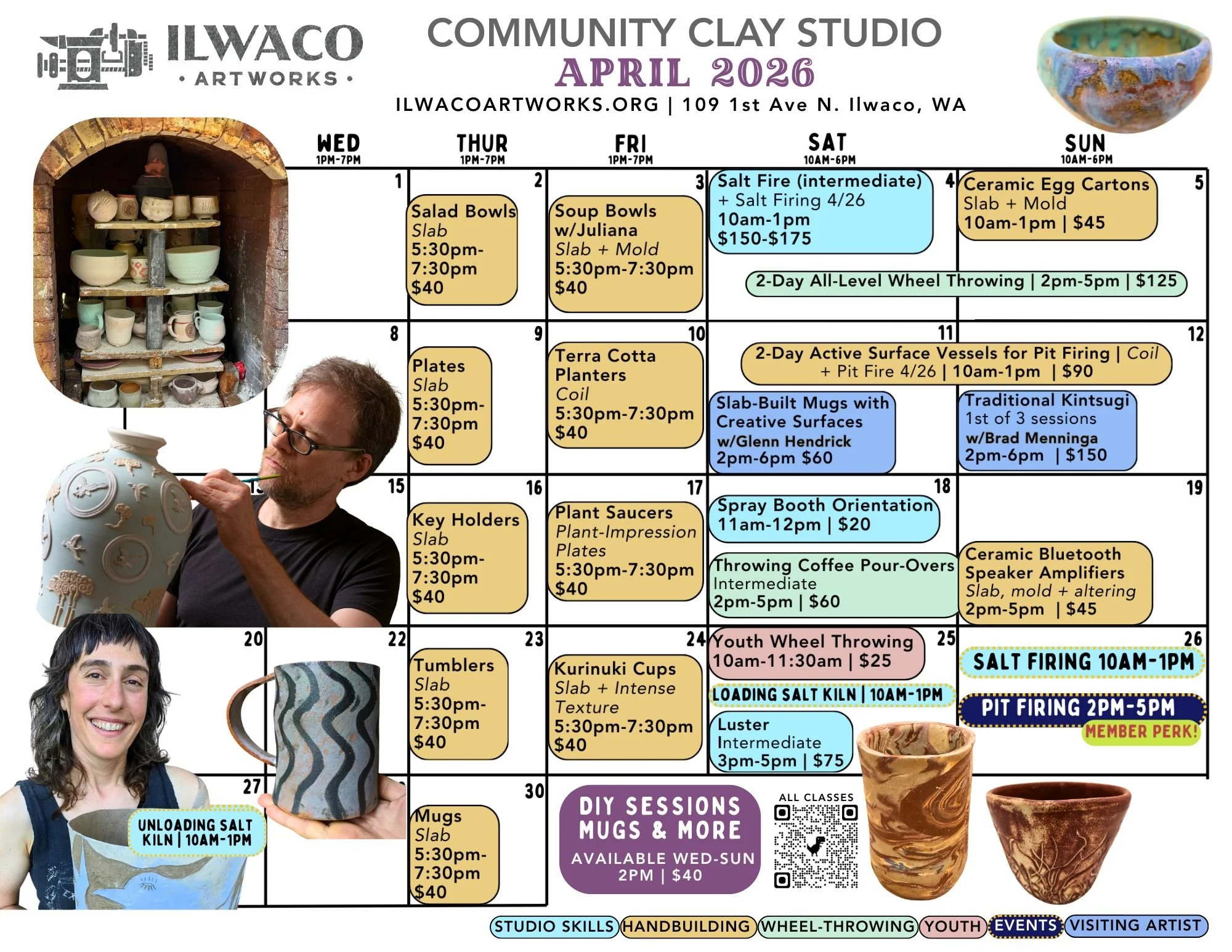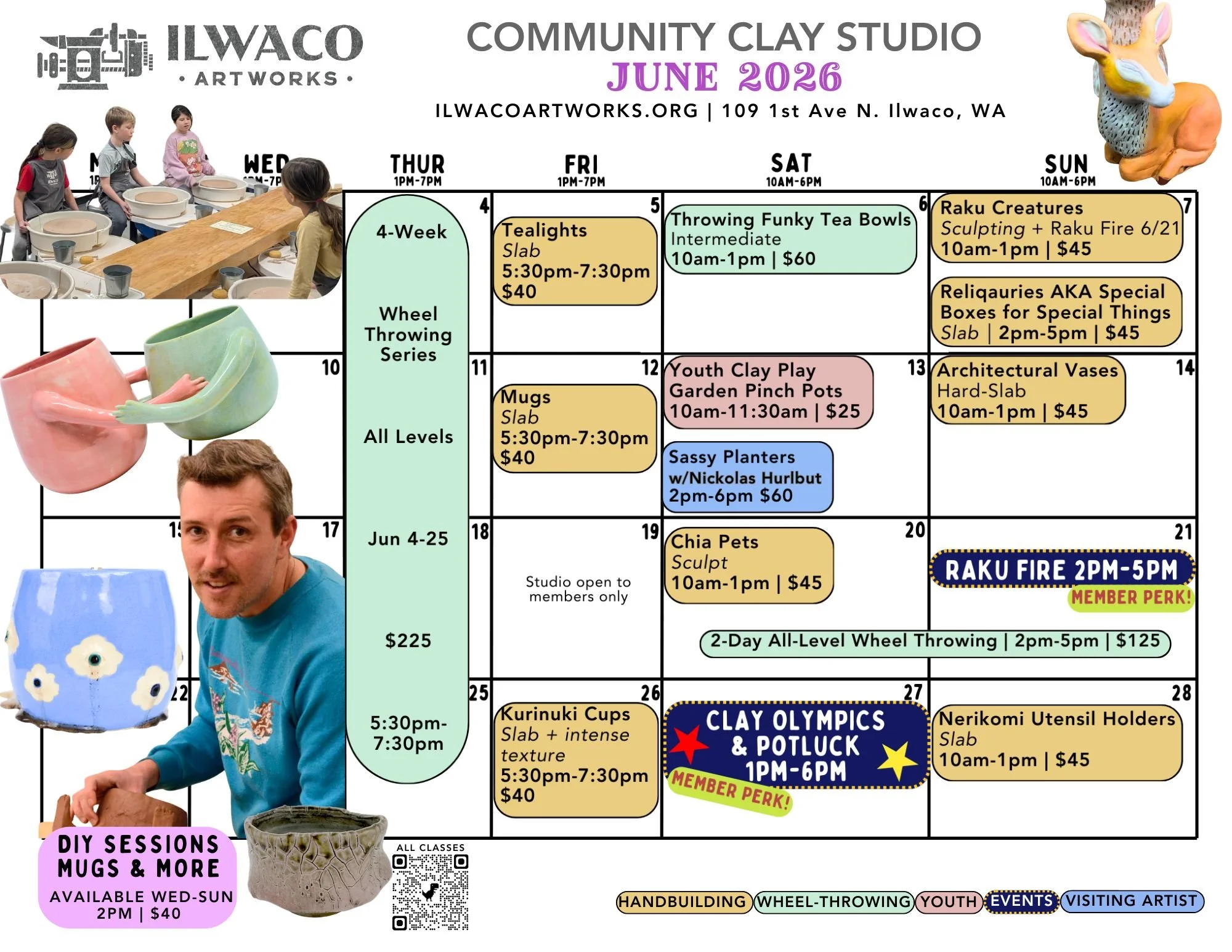 -Shipping of finished pieces available for visiting attendees. -Studio members receive 20% off all workshops.